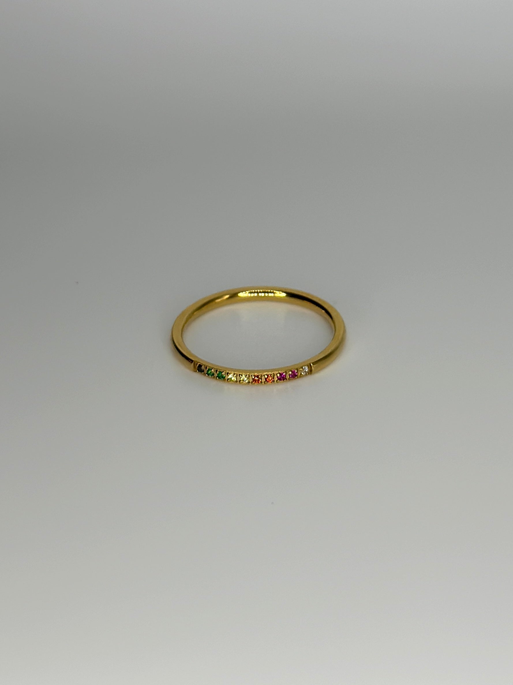 Expertly crafted with a stainless steel or 18k gold cover, this rainbow ring boasts colourful stones and a minimalist design. Lead and nickel free, it's both stylish and safe for sensitive skin. Elevate any outfit with this elegant and vibrant accessory.