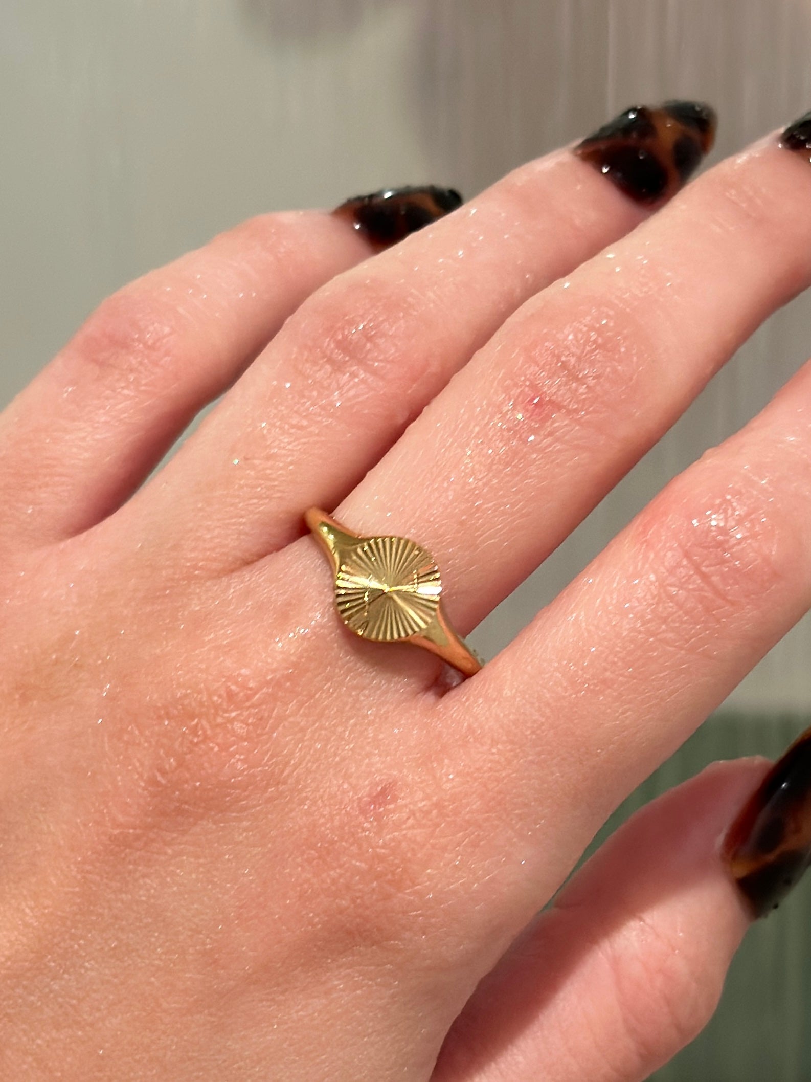 Experience the radiance of the Sunset ring, crafted with stainless steel and an 18k gold cover. Made of nickel-free and lead-free materials, this ring is not only stunning but also safe for your skin. Shine like the sun with this elegant piece.